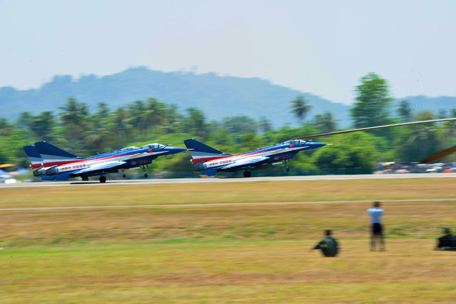 Bayi Aerobatic Team of the Air Force of the Chinese People's Liberation Army performs in LIMA on March 17, 2015. (Xinhua/Zhang Wenzong)