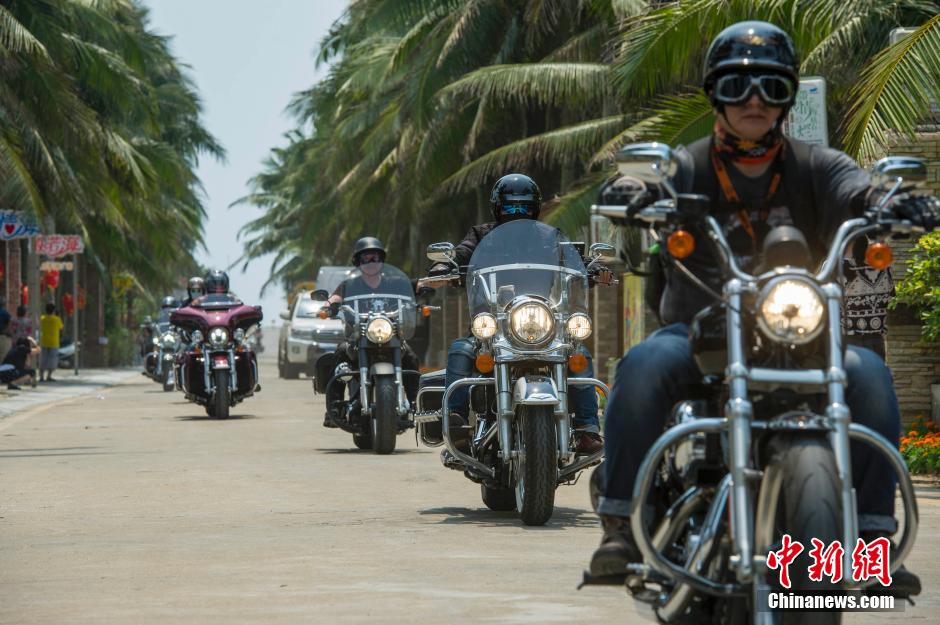 A team of Harley riders showed up in Boao, Hainan on March 18, 2015. There are over 30 Harley motorcycles in the motorcade, and most of the riders are senior executives or managers from companies in Shanghai. The average age of the riders is over 35, and the oldest one is over 60 years old. (Chinanews/Luo Yunfei)