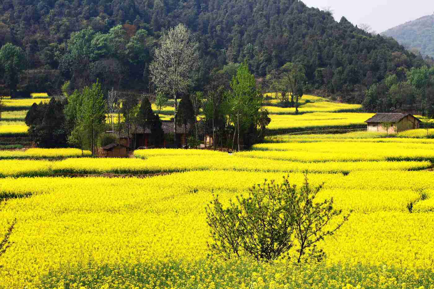 With the advent of the spring, the air is filled with the fragrance of flowers. Millions of acres of rape flowers in the basins and hills burst into full bloom at the same time.