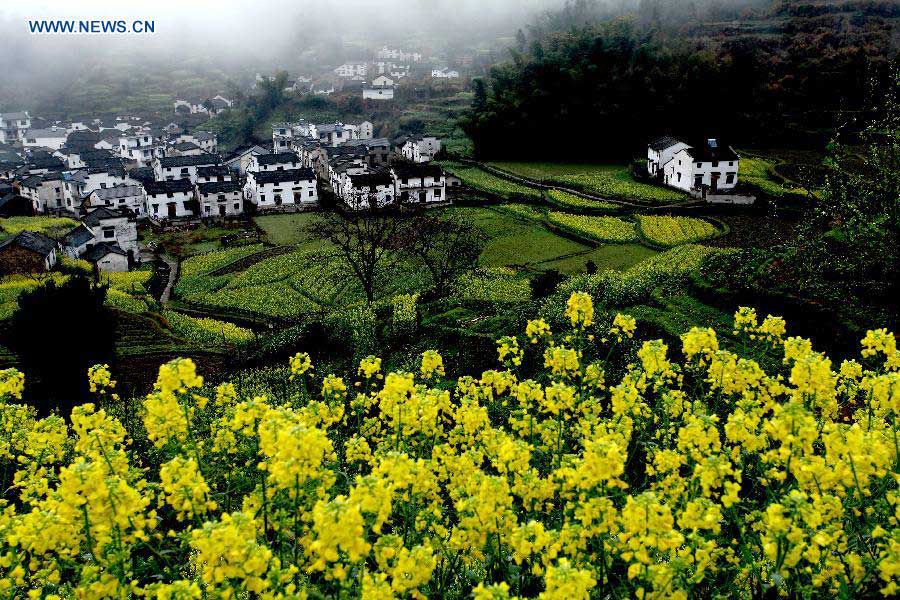 Rape flowers are in full bloom in Hangsha Township of Baojing County, central China's Hunan Privince, March 22, 2015. (Xinhua/Peng Biao)