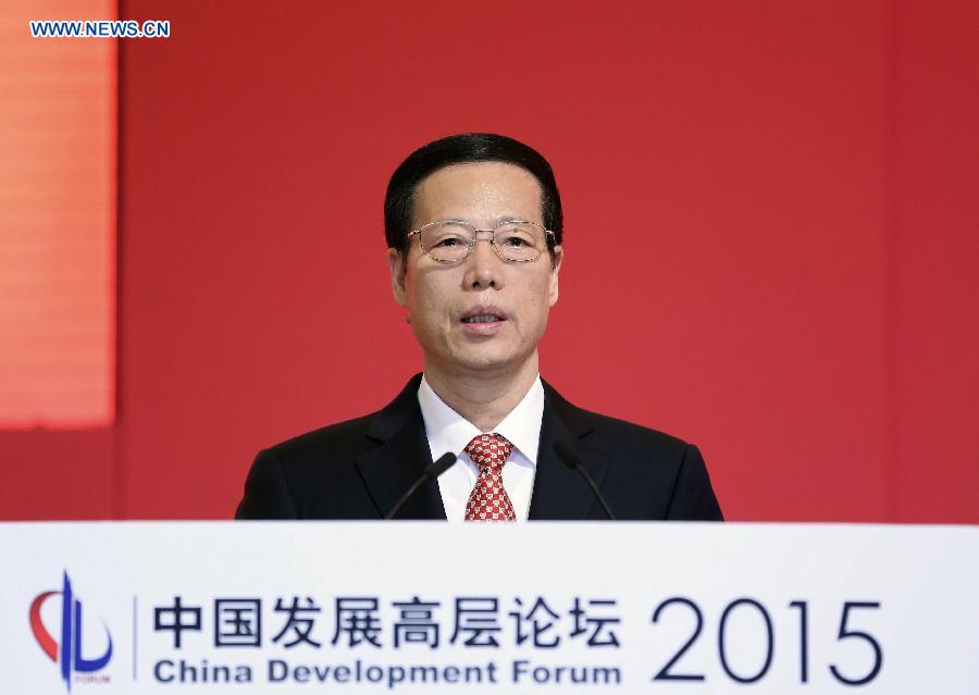 | Chinese Vice Premier Zhang Gaoli delivers a speech during the opening ceremony of China Development Forum in Beijing, capital of China, March 22, 2015. [Photo: Xinhua/Ding Lin] |