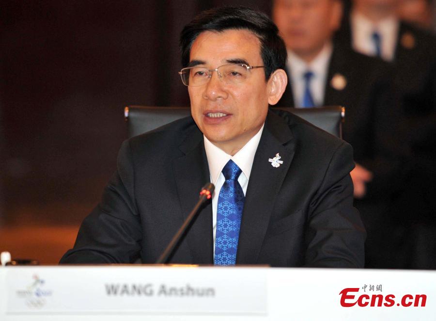 Wang Anshun, Beijing mayor and president of the Beijing 2022 Bid Committee, delivers a speech at the opening ceremony of the inspection tour of Beijing, which has joined up with Zhangjiakou city in Hebei province to bid to co-host the 2022 Winter Olympics, March 24, 2015. (Photo provided to China News Service)