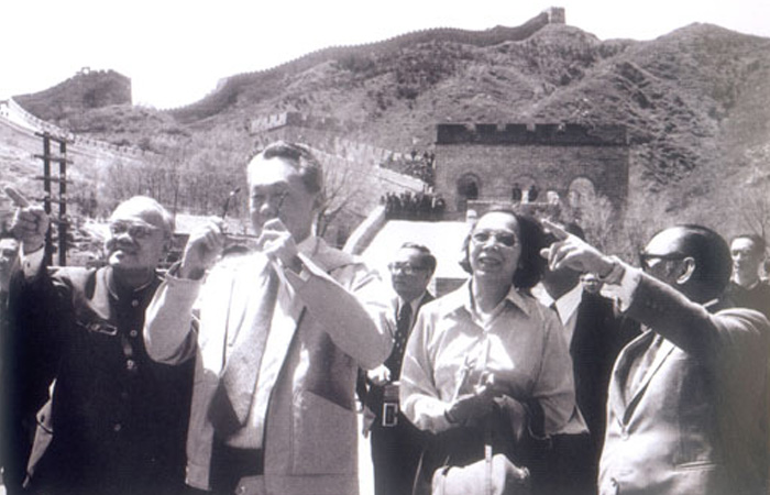 Lee visits the Great Wall with Trade Minister Li Qiang, May 13, 1976. (Photo/Haiwainet.cn)
