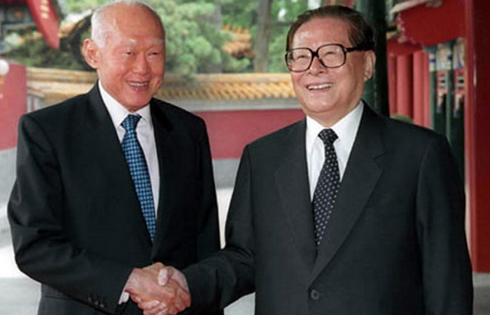 Jiang Zemin meets Lew Kuan Yew at Zhongnanhai in September 2002. (Photo/Haiwainet.cn)