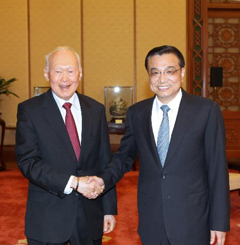 Vice Premier Li Keqiang meets Lee Kuan Yew, May 17, 2010. (Photo/Haiwainet.cn)