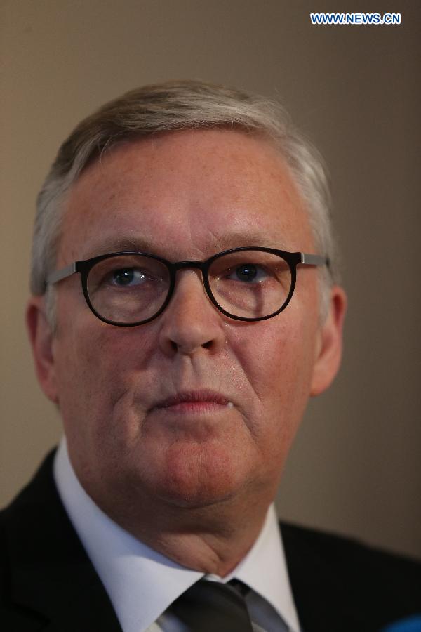 Germanwings CEO Thomas Winkelmann attends the press conference over the crashed Germanwings flight 4U9525 in Cologne, Germany, on March 24, 2015. There are no Chinese passengers onboard the crashed Germanwings flight 4U9525, "as far as we know today", said Germanwings CEO Thomas Winkelmann on Tuesday. (Xinhua/Luo Huanhuan)