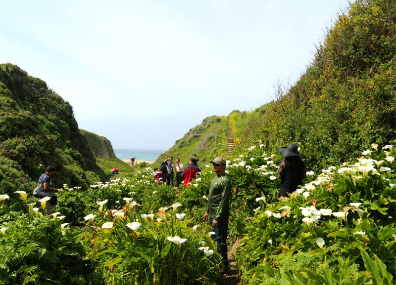 San Francisco, Mar. 24, (People's Daily Online) -- Just 500 feet away from the Pacific Ocean coast in California near the Big Sur, there is an abundance of wild calla lilies blooming each spring, which reminds people of the poem " Facing the ocean, where spring flowers blossom" by Chinese poet Hai Zi. (People's Daily Online/Han Shasha)