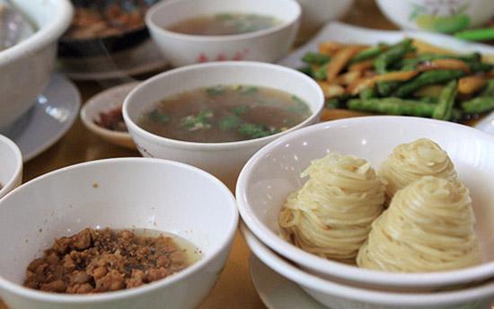 Geda noodle is a popular snack in Sanyuan. In each bowl there are three piece of dough, with saozi sauce, hot pepper oil and sour soup. Some one call it three ways of eating noodles.