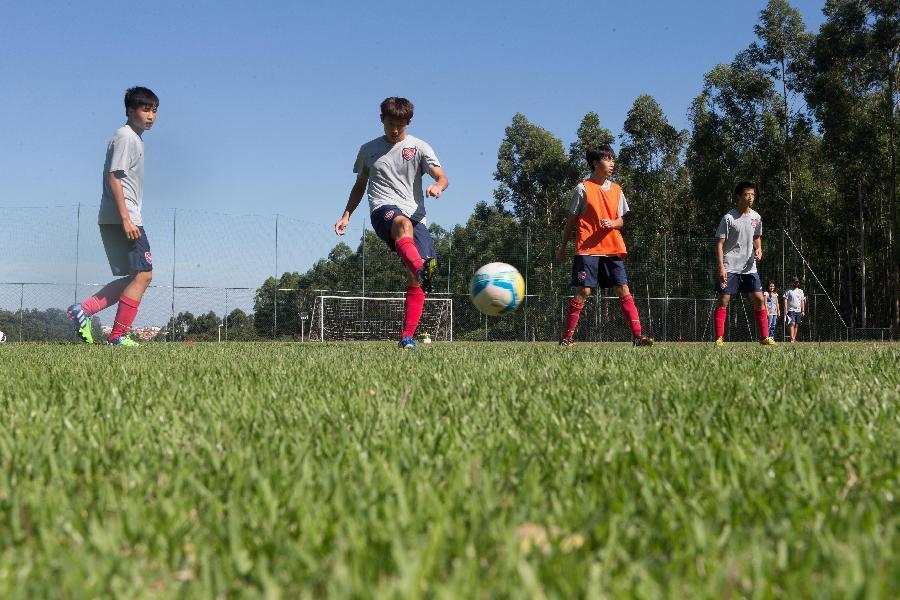 | Young players train at Luneng Brazil Sports Center in Porto Feliz, Brazil, March 25, 2015. As a milestone of China's Shandong Luneng Football Club's youth training project, Luneng Brazil Sports Center opend in mid-July of 2014. The 160,000-square-meter sports center, located about 100 kilometers outside Brazil's largest city Sao Paulo, has five standard pitches and two futsal fields. It can accommodate 190 people and includes player apartments, a restaurant, gym, physical therapy room, activity room, meeting room and swimming pool. As the Brazilian base, the Luneng Brazil Sports Center is not only for the youth of Luneng football club, but also for domestic and international club teams and national teams at all levels. The best players aged between 14 and 17 will be selected from Luneng Football School and come to Brazil to learn football techniques and participate in the Brazilian youth league. In order to be rooted in the atmosphere of Brazilian football, Luneng worked out a newly-designed training plan. Chinese players will join the Brazilian players of the same age to train and compete together. They live in the same dormitory, eat in the same canteen, help each others so that they can learn from each others. (Xinhua/Xu Zijian) |
