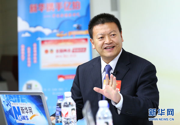| A NPC deputy and mayor of Guyuan of northwestern China's Ningxia Hui Autonomous Region gives an interview with Xinhuanet. (Photo source: Xinhuanet photo) |
