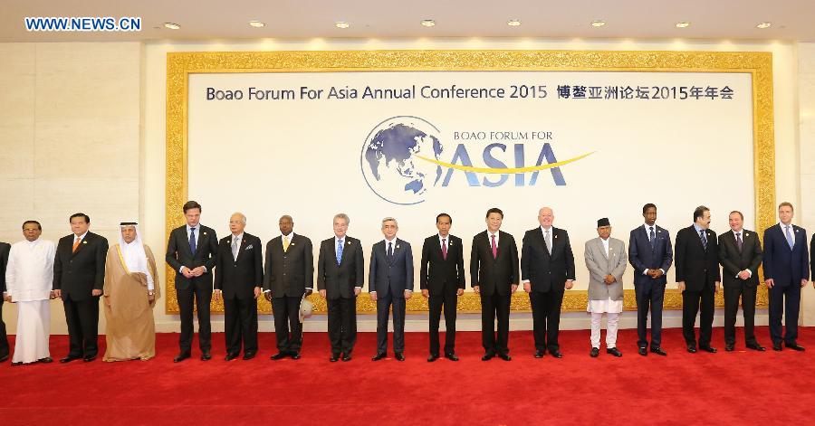 Chinese President Xi Jinping (7th R) poses for a group photo with foreign leaders attending the 2015 annual conference of the Boao Forum for Asia (BFA) in Boao, south China's Hainan Province, March 28, 2015. (Xinhua/Ding Lin)