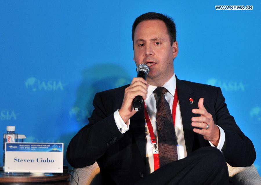 Steven Ciobo, Parliamentary Secretary to the Minister For Foreign Affairs, Parliamentary Secretary to the Minister for Trade and Investment of Australia, speaks at a sub-forum with the theme of "The Next Financial Crisis" during the 2015 Boao Forum for Asia (BFA) in Boao, south China's Hainan Province, March 28, 2015. (Xinhua/Yang Guanyu)