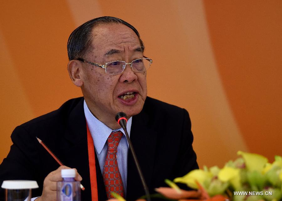 Fredrick F. Chien, Senior Advisor of Cross-Straits Common Market Foundation, speaks at a Boao Forum for Asia (BFA) Cross-Straits Business Roundtable with the theme of "Innovate and Benefit All: A New Future of Cross-Straits Economic Cooperation" during the 2015 BFA in Boao, south China's Hainan Province, March 29, 2015. (Xinhua/Guo Cheng)