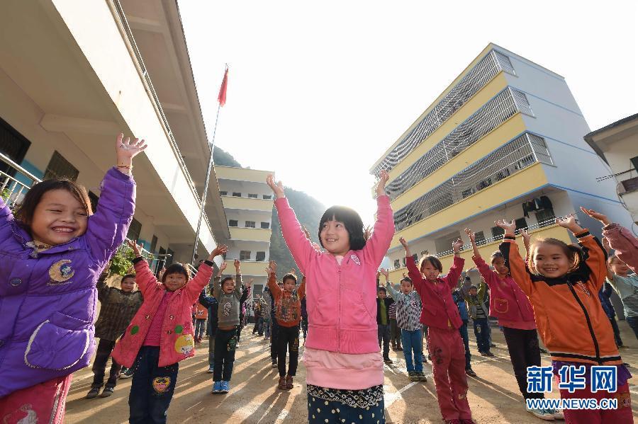 Students do exercises in the new playground in Nongyong school on Nov. 24, 2014. (Xinhua/Huang Xiaobang)