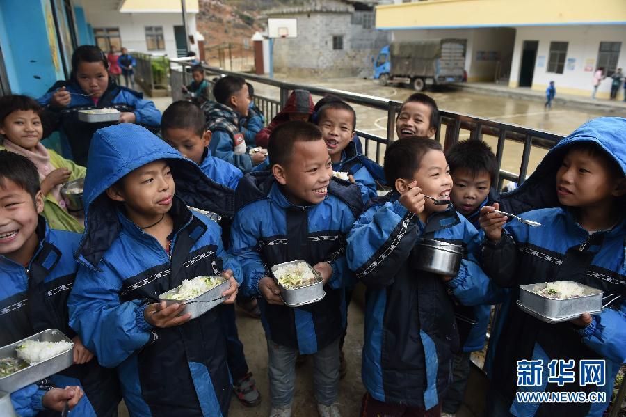 Students have lunch in school on Jan. 6, 2015. (Xinhua/Huang Xiaobang)