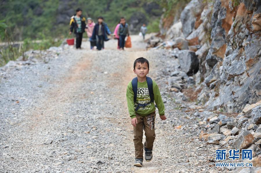 Lan Guofeng, 11, goes to Nongyong school on March 3, 2015. From January 2015, the school started to provide blankets and quilts to the children. The children no longer need to go to school with heavy "burdens". (Xinhua/Huang Xiaobang)