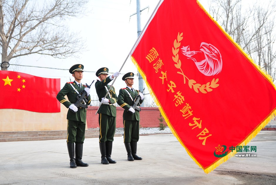 Team members of "Snow Eagle", a female detachment of Xinjiang Border Guard Corps, participate in the establishment ceremony on March 11, 2015. (Chinamil.com.cn/Fan Xinyu)
