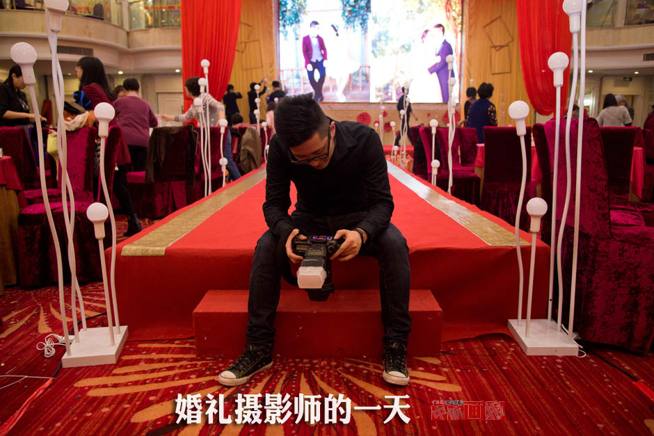 Wang Sheng, 31, is a wedding photographer in Fuzhou, east China's Fujian province. He always gets up at 5 a.m. and goes to work with 10 kilograms of equipment. More than 13 hours work is very tough. He pays attention to the newlyweds, hoping to capture fantastic moments.
