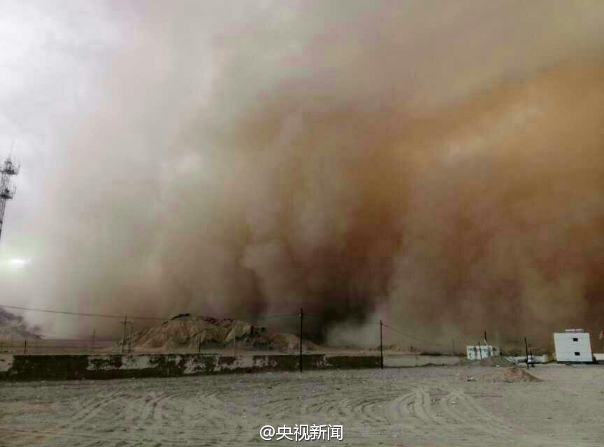 A sandstorm hits Golmud, northwest China's Qinghai province on March 31, 2015. (Photo source/Macroblog of CCTV))