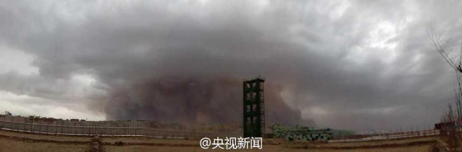 A sandstorm hits Golmud, northwest China's Qinghai province on March 31, 2015. (Photo source/Macroblog of CCTV))