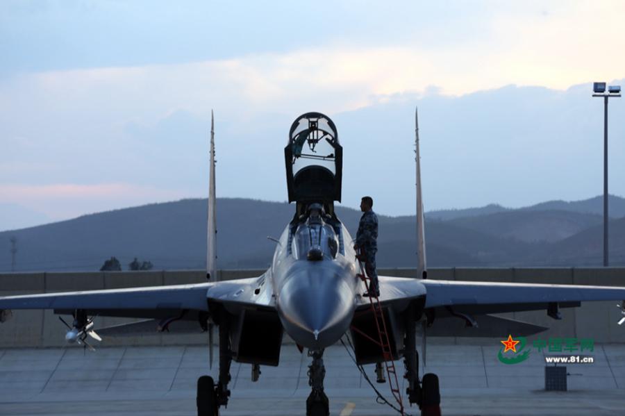 PLA's J-11 fighters carrying missiles in drill (4)