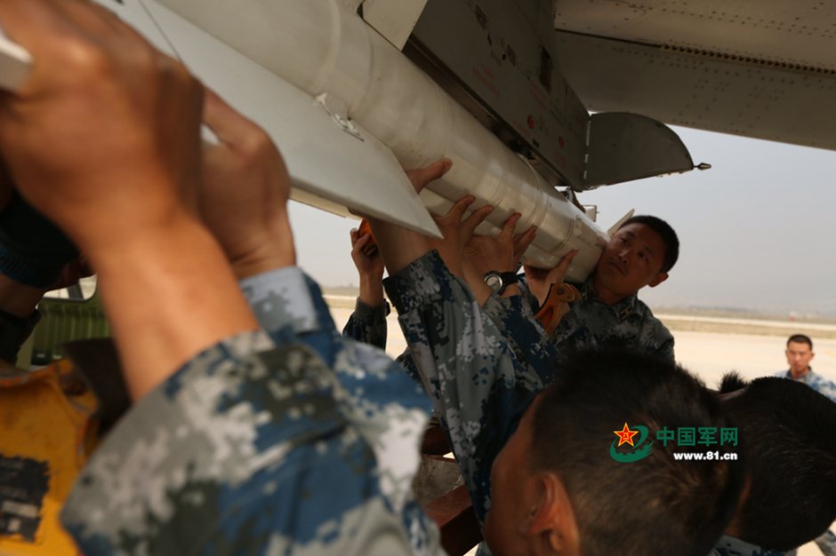 | In this photo taken on March 29, 2015, J-11 fighter jets carrying missiles join an actual combat drill conducted by a division under the Air Force of the Chengdu Military Area Command (MAC) of the Chinese People's Liberation Army (PLA). (81.cn/Photo) |