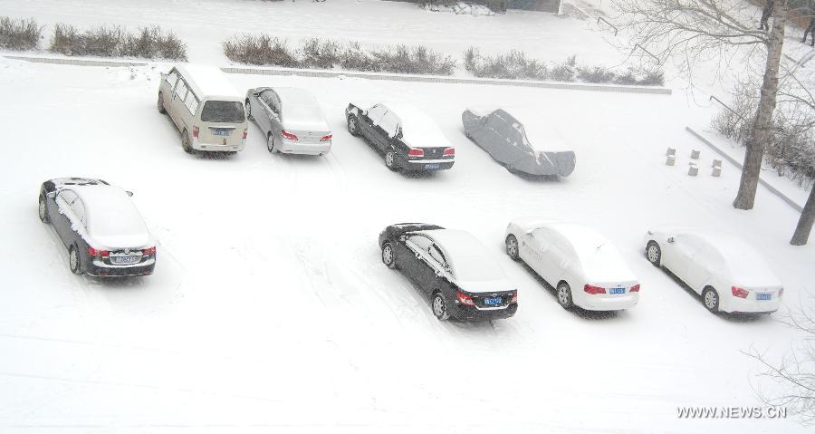Motorcars are covered with snow in Bei'an of Heihe City, northeast China's Heilongjiang Province, April 5, 2015. A snowfall hit the northern parts of Heilongjiang and Inner Mongolia on Monday. (Xinhua/Chen Degang)