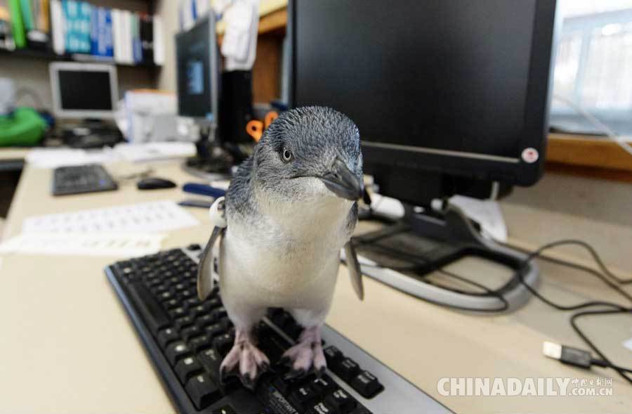 A baby penguin is seen in an office in Melbourne Zoo, Australia. The baby penguin is named Wing by staff of the Melbourne Zoo where she was raised up. (Source: chinadaily.com.cn)