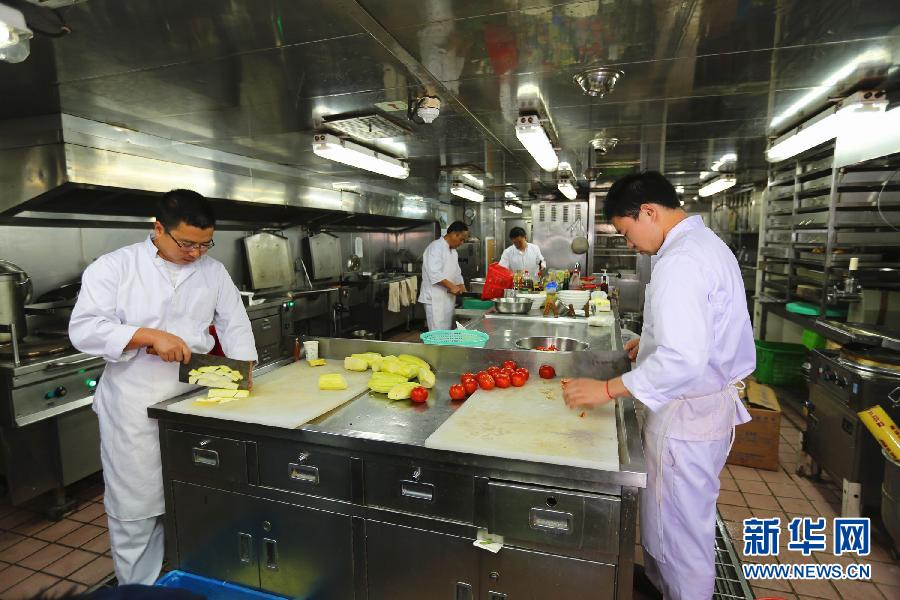 Photo taken on April 3, 2015 shows dinner preparing on Xuelong. (Photo/Xinhua)