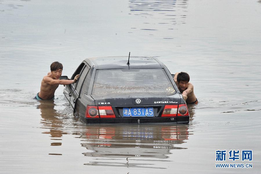Rainstorm swamps cars in Changsha (3)