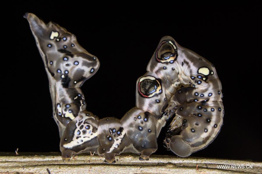 This is a photo of the larva of a moth taken by photographer Cheng Bin. China's first nature image record named "The Beauty of Nature - Nature & Wildlife Photography in China" was released recently, which includes the essence of the 63 programs IBE (Imaging Biodiversity Expedition) has researched on in the six years since it was founded. IBE, founded in 2008, is an institute which aims to record the nature in China by using imaging biodiversity expedition. (Xinhua/Cheng Bin)