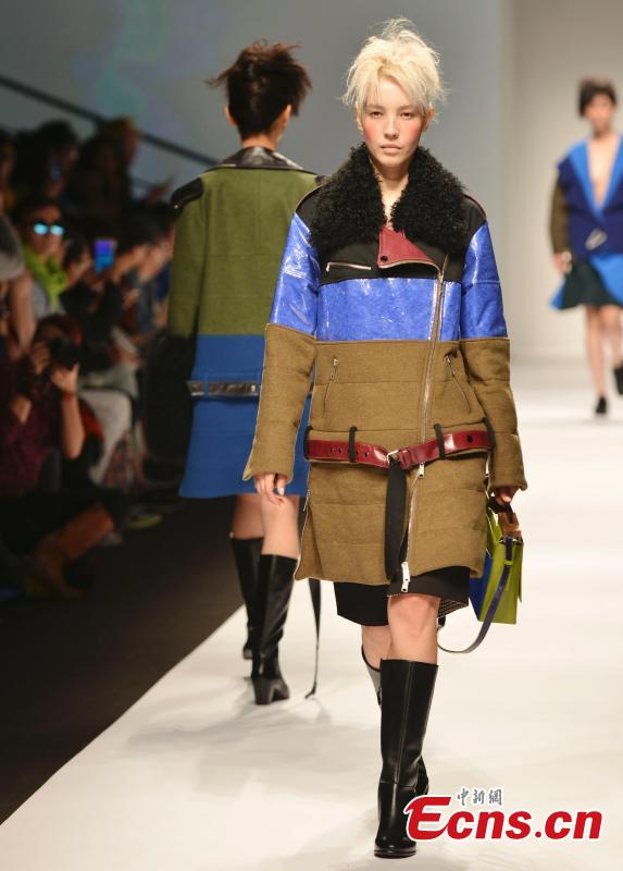 A model presents a creation during Shanghai Fashion Week Fall/Winter 2015 in Shanghai, April 8, 2015. Nearly 50 shows will be held in the important fashion event from April 8 to 15, featuring both Chinese and international brands. (Photo: China News Service/Yuan Jing)