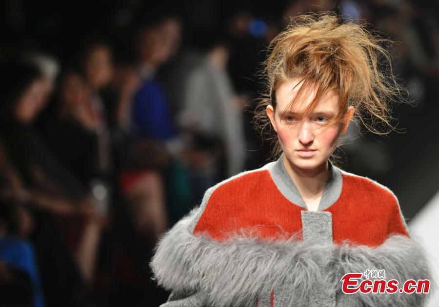 | A model presents a creation during Shanghai Fashion Week Fall/Winter 2015 in Shanghai, April 8, 2015. Nearly 50 shows will be held in the important fashion event from April 8 to 15, featuring both Chinese and international brands. (Photo: China News Service/Yuan Jing) |