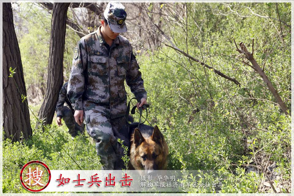 Soldiers from Jinan Military Region train their dogs to surmount obstacles, go through fire circles, cross bridges and catch things rapidly. Those dogs are trained to sit, lie down, stand, walk and bite. (Chinamil.com.cn/Bi Huaming)