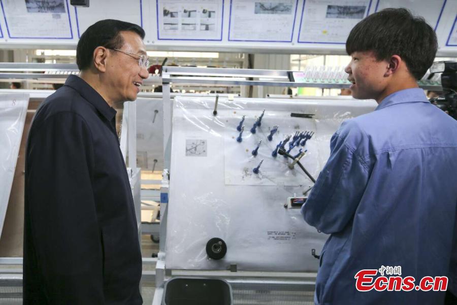 Premier Li Keqiang (R) talks with a worker during his visit to a State-owned bulb factory in Changchun, the capital of Northeast China’s Jilin province, April 9, 2015. Most of more than 7,500 workers in the factory, now transformed into the country's largest wire harness manufacturing company, come from nearby communities. (Photo: China News Service/Liu Zhen)