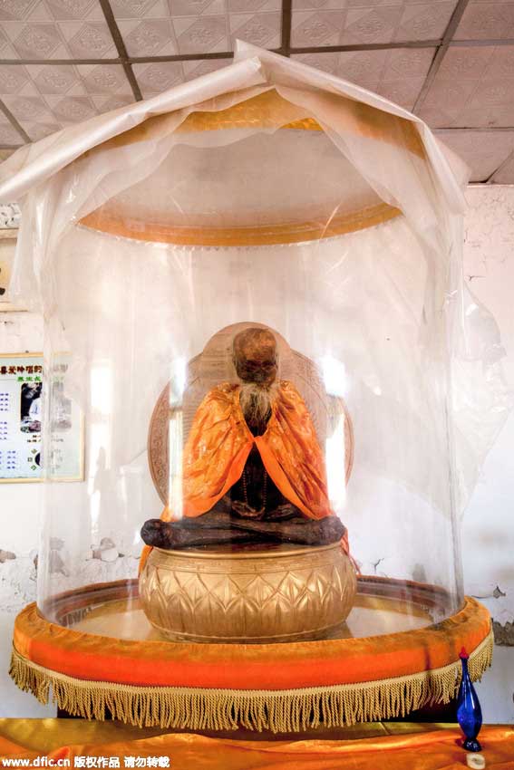 102-year-old Wu Yunqing passed away 17 years ago. His body is preserved under a crystal cover at Lingquan Temple, Shanbao Town, Anyang City of Henan Province. But surprisingly, the dead body has not decayed yet. The dead monk has a shiny skin, silver beard and white hair and clear facial features. (IC/Wang Zirui)
