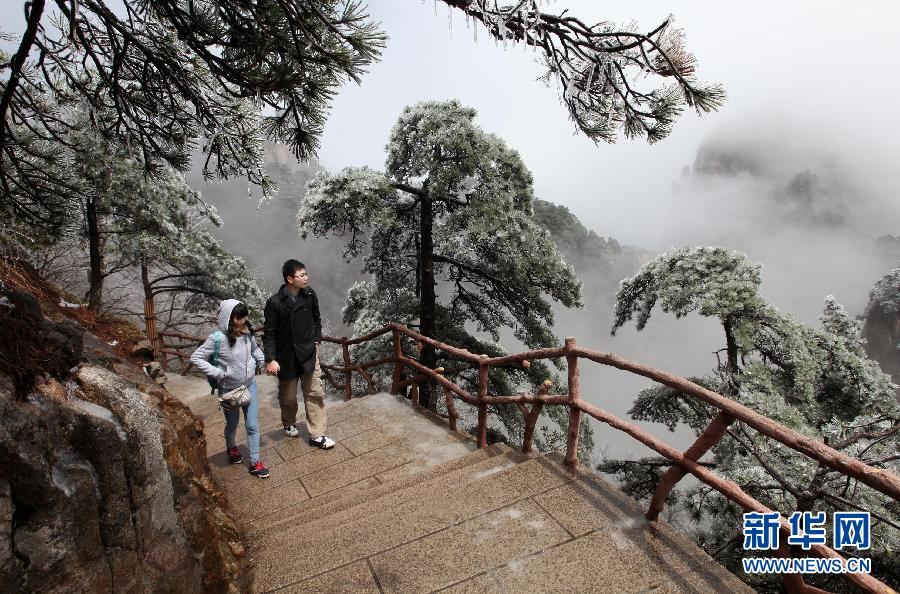 Photo taken on April 8, 2015 shows the snow scenery of Huangshan Mountain in Huangshan city, east China's Anhui province. (Xinhua/Shi Yalei)