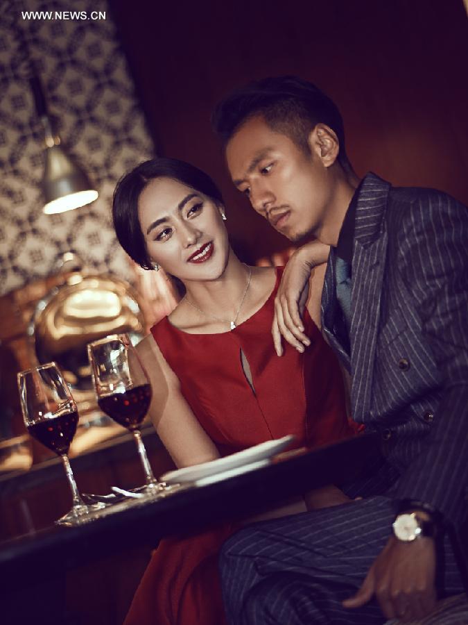 This is a wedding photo of the bridegroom Gerong Phuntsok (R) and his wife Dawa Zhoima taken in Chengdu, capital of southwest China's Sichuan Province. Wearing traditional Tibetan costumes and also modern clothes in their wedding photos, the Tibetan couple has become a hot topic on Tencent's instant messaging app Wechat, with their photos receiving clicks of more than 100,000 times in four hours. (Xinhua/He Di)
