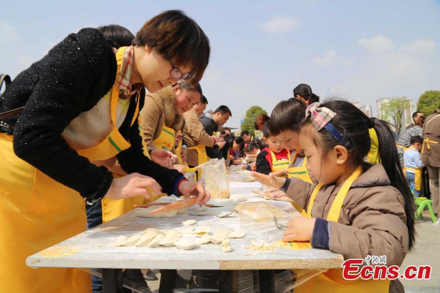 A total of 17,000 people simultaneously make dumplings while watching a cooking class video in 18 places in North China’s Henan province, April 12, 2015. With 4613 participants passing the challenge in the 50-minute long class, it set a Guinness World Record for the largest cooking class. The previous record involved 3,687 people making dumplings in Qingdao, Shandong province, February 14, 2015. (Photo: China News Service/Wang Zhongju)