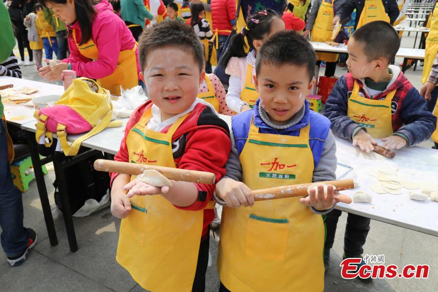 A total of 17,000 people simultaneously make dumplings while watching a cooking class video in 18 places in North China’s Henan province, April 12, 2015. With 4613 participants passing the challenge in the 50-minute long class, it set a Guinness World Record for the largest cooking class. The previous record involved 3,687 people making dumplings in Qingdao, Shandong province, February 14, 2015. (Photo: China News Service/Wang Zhongju)