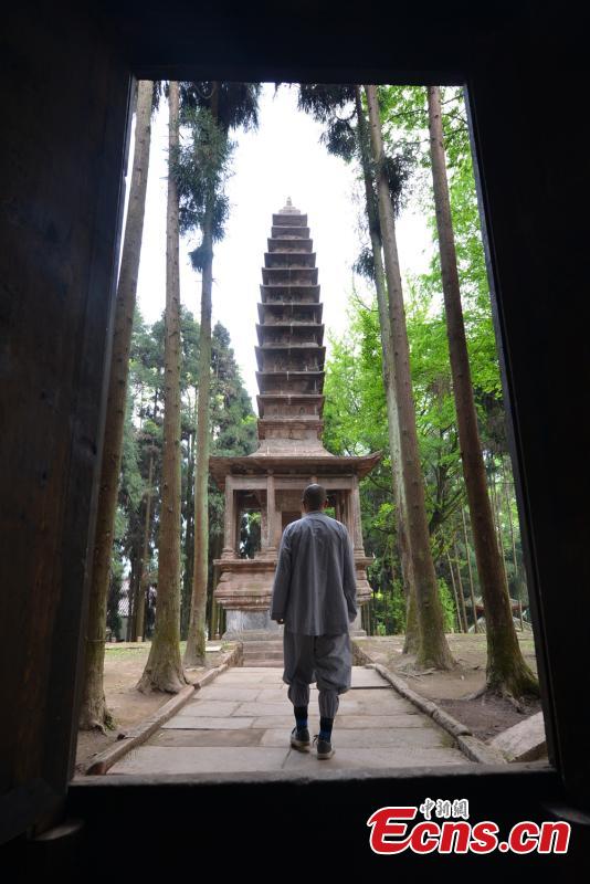 A group of investigators, including Buddhists and archaeologists, inspect a stone pagoda in Qionglai city, Southwest China’s Sichuan province, April 13, 2015. Sources say sarira of Sakyamuni, relics of the Buddha after cremation, is stored in the 800-year-old building. (Photo: China News Service/Zhang Lang)