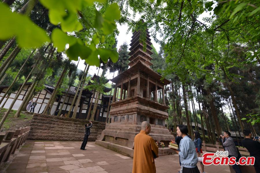 A group of investigators, including Buddhists and archaeologists, inspect a stone pagoda in Qionglai city, Southwest China’s Sichuan province, April 13, 2015. Sources say sarira of Sakyamuni, relics of the Buddha after cremation, is stored in the 800-year-old building. (Photo: China News Service/Zhang Lang)
