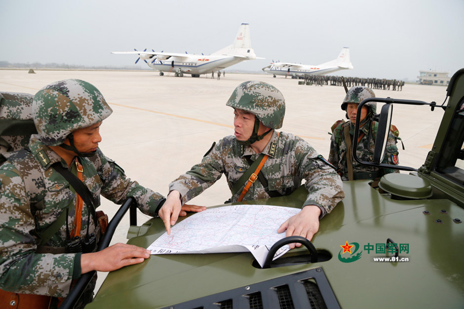 To improve the quick reaction capability, a special operations brigade of Jinan Military Region and an air force unit jointly conduct air transportation training on April 8, 2015.(Photo source: www.81.cn)
