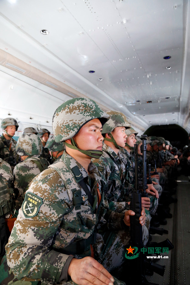 To improve the quick reaction capability, a special operations brigade of Jinan Military Region and an air force unit jointly conduct air transportation training on April 8, 2015.(Photo source: www.81.cn)