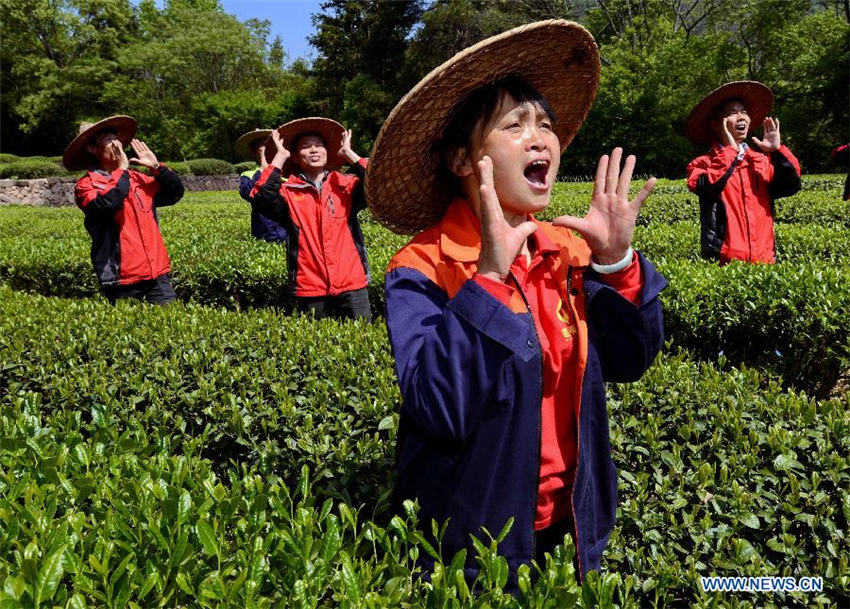 Tea growers attend a ceremony praying for harvest of tea in Wuyishan City, southeast China's Fujian Province, April 16, 2015. (Xinhua/Zhang Guojun)