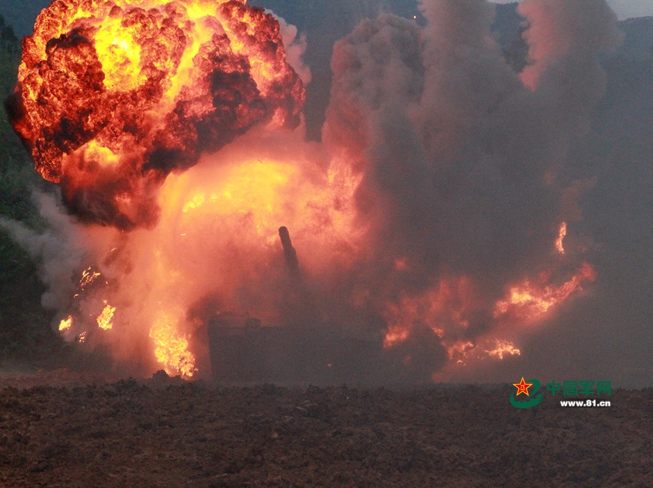 The Type 96A tanks get through the gunfire blockade zone of the "enemy" and move forward. On April 12, 2015, an armored regiment under the Nanjing Military Region of the People's Liberation Army (PLA) held training under the combat environment to temper soldiers’ combat skills and fighting spirit as well as to improve the emergency response ability. (Photo source: 81.cn)