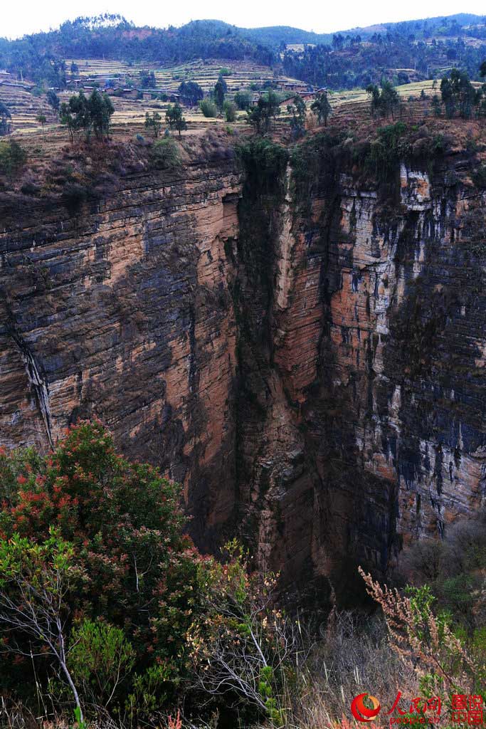 Jiyi Canyon, a natural wonder, lies high above the turbulent Daliang River in Wuding county, southwest China's Yunnan province. It is 12 kilometers long, 200 meters at its widest, 6 meters at its narrowest and 300 meters at its deepest point. (Photo/People.cn)