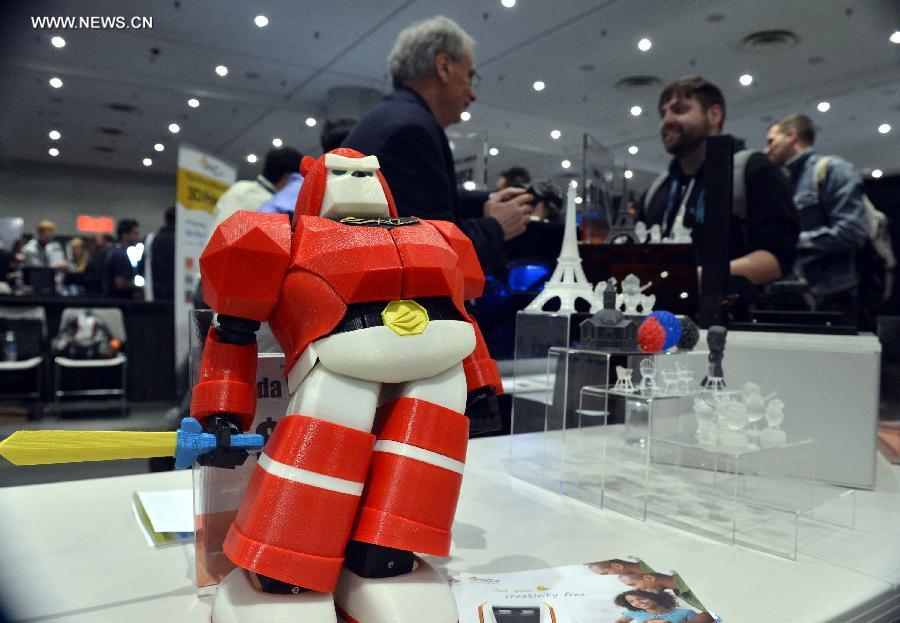 A 3D printed transformer is seen at the 3D Print Design Show in New York, the United States, April 16, 2015. The 3D Print Design Show is held on April 16 and 17 in New York. (Xinhua/Wang Lei)