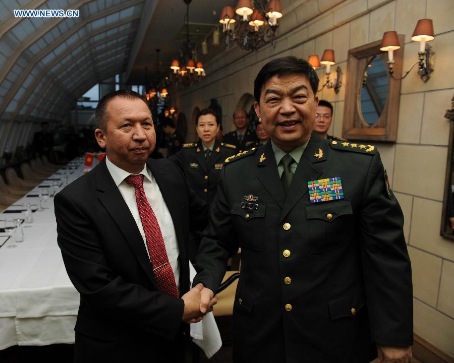 Chinese State Councilor and Defense Minister Chang Wanquan (R, front) meets with Kyrgyzstan's Defense Minister Abibulla Kudaiberbiyev (L, front) attending the 4th Moscow International Security Conference inRussia, on April 16, 2015.(Xinhua/Dai Tianfang)