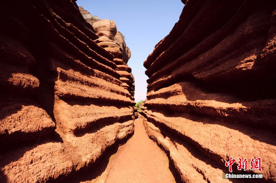 A large area of red rock forest is found in Baizhu village, 50 kilometers away from Youyang county, southwest China’s Chongqing city. Relevant authorities have taken measures to protect the forest. So far, nearly 66 hectares of red rock forest have been excavated, attracting many tourists to the site. (Chinanews/Cheng Bisheng)